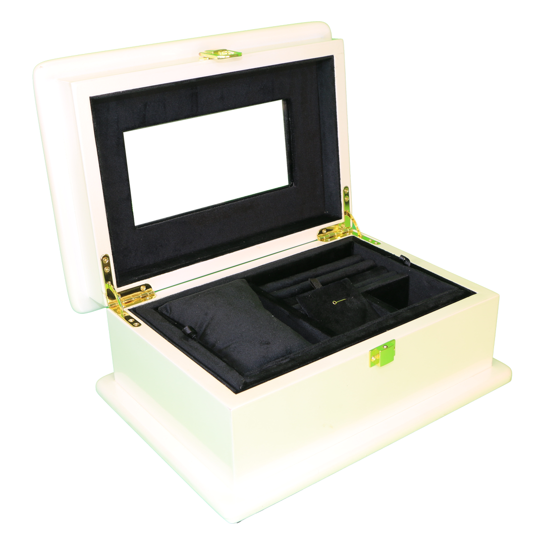توضيحات :کلکسیون چوبی سایز 1 مدل FL، سفید داخل مشکی(دوطبقه) گروه: جعبه طلا و جواهر دسته بندي: کلکسیون توليد: ایرانی تجدیدپذیر کد خانواده: FL سايز: 1 وزن: 2360 طول داخل: 11 عرض داخل: 22 ارتفاع داخل: 6.5 طول بيرون: 20.2 عرض بيرون: 28.2 ارتفاع بيرون: 12.2 رنگ داخل: مشکی رنگ بيرون: سفید پوشش داخل: پارچه جاسمین پوشش بيرون: چوب MDF رنگی جنس بدنه: چوب